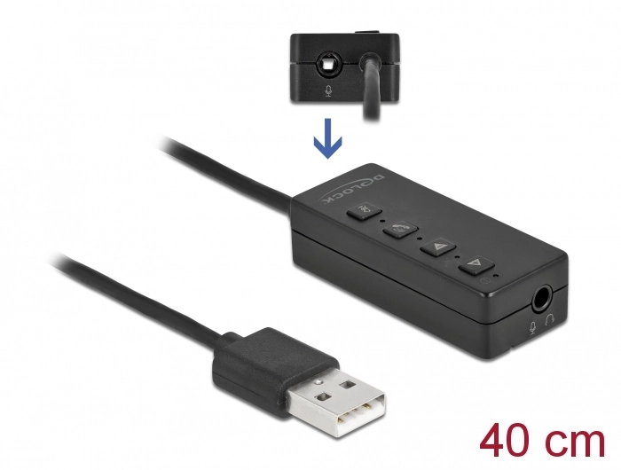 DeLOCK 66731. Aansluiting 1: 2 x 3.5mm, Aansluiting 1 type: Vrouwelijk, Aansluiting 2: USB Type-A, Aansluiting 2 type: Mannelijk, Snoerlengte: 0,4 m, Kleur van het product: Zwart