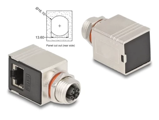 DeLOCK 60088, M12, RJ45, Zwart, Metallic