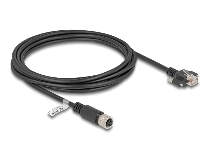 DeLOCK 80450, 3 m, Cat5e, F/UTP (FTP), M12, RJ-45, Zwart