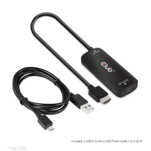 CLUB3D HDMI + Micro USB to USB Type-C 4K120Hz or 8K30Hz M/F Active Adapter, 1 m, HDMI + USB, USB Type-C, Mannelijk, Vrouwelijk, Recht